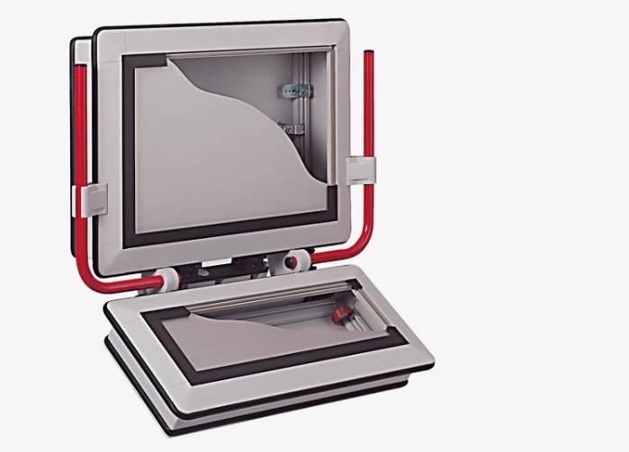 Корпус оснащен задней панелью, которая крепится на шарнирах или на винтах (в зависимости от типа корпуса). По запросу возможна комплектация передней панели различно электромеханическими компонентами: дисплеями, кнопками, панелями управления, мембранными клавиатурами и т.д. Помимо этого, боковые профили и задняя панель могут использоваться для дополнительной установки компонентов.