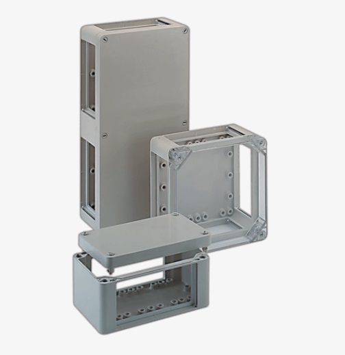 Универсальная конструкция с фланцем (возможна установка от 2 до 6 фланцев) позволяет комбинировать несколько корпусов этой серии. Фланцевые отверстия могут быть закрытыми и/или комбинированными в зависимости от области применения корпуса и требований заказчика. Корпуса из полиэстера с фланцем опционально доступны с прозрачной крышкой, которая крепится к основанию при помощи винтов.
